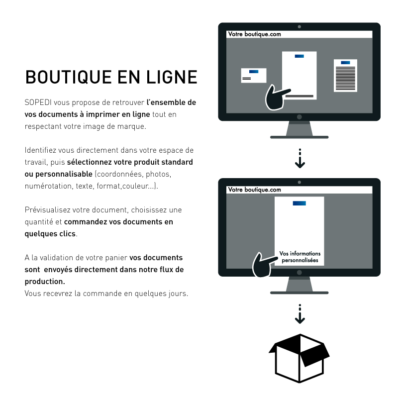 La boutique en ligne adopte votre identité visuelle et permet d’effectuer des commandes en toute simplicité.